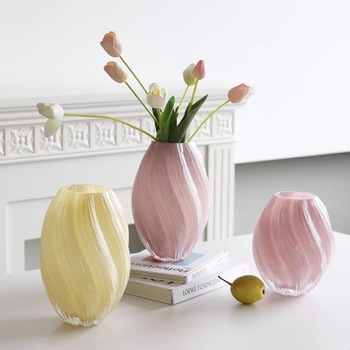 Jarrón de cristal de huevo con forma elíptica bonita y creativa, decoración de dormitorio, blanco leche, rosa, amarillo retorcido, patrón de cilindro alto