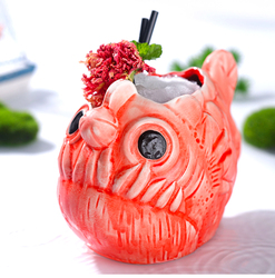 Taza de cristal sin plomo de Hawaii Tiki de pez rojo, copa de cristal de 710ml de capacidad