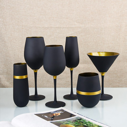 Múltiples estilos Diseño clásico Decoración dorada Galvanoplastia Cristalería de estera negra Juego de copas de vino 260-600ml Capacidad Negro