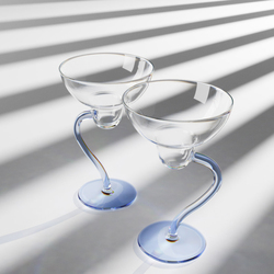 Interesante novedad divertida hecho a mano de lujo personalizado azul doblado curvado tallo sin plomo vino Martini vidrio