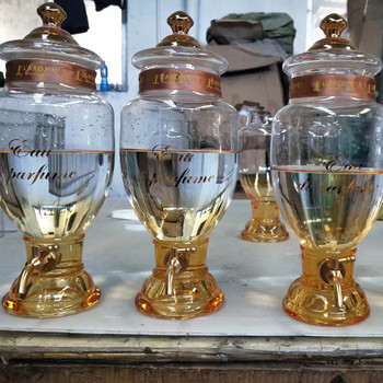 特注カラーファンシー大容量飲料ディスペンサー鉛フリーハンドブルークリスタルジュースガラス瓶タップ付き