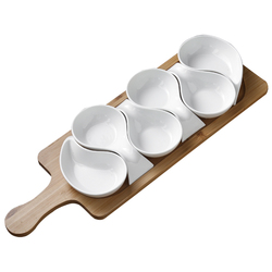 섬세한 세라믹 접시와 나무 트레이 세트 식물 패턴이있는 친환경 견과류 과일 디저트 접시