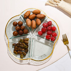 친환경 5 개의 꽃잎 꽃 분할 유리 접시 접시 디저트 또는 선물을위한 골드 테두리가있는 5 개의 구획 너트 플래터
