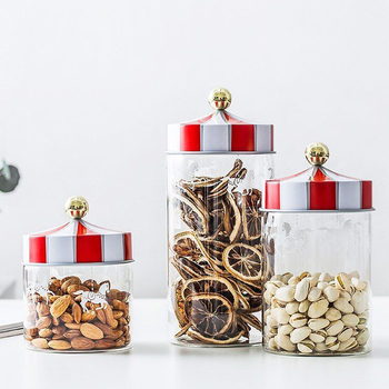 Fun Fancy Red White Merry-Go-Round Glass Jars Eco-Friendly Straight Shape Food Metal Lid for Honey Spice Drink