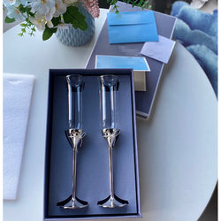 Beste Cadeau Luxe Voor Champagneglas Met Zilveren Metalen Steel Set Van 2 Wijnglazen Met Strik Elegante Bekers